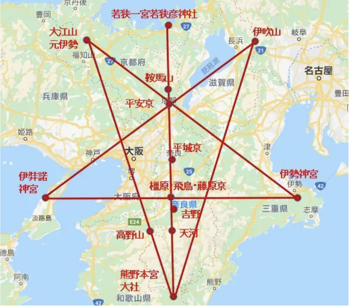 霊道をつなげた地図。