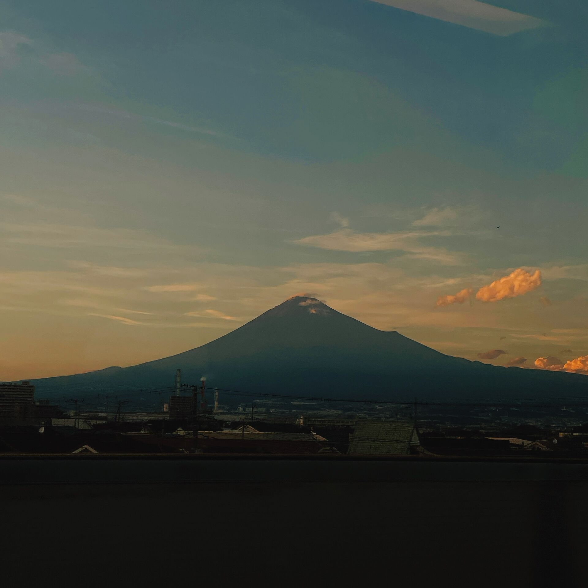 夕暮れの富士山に遭遇。